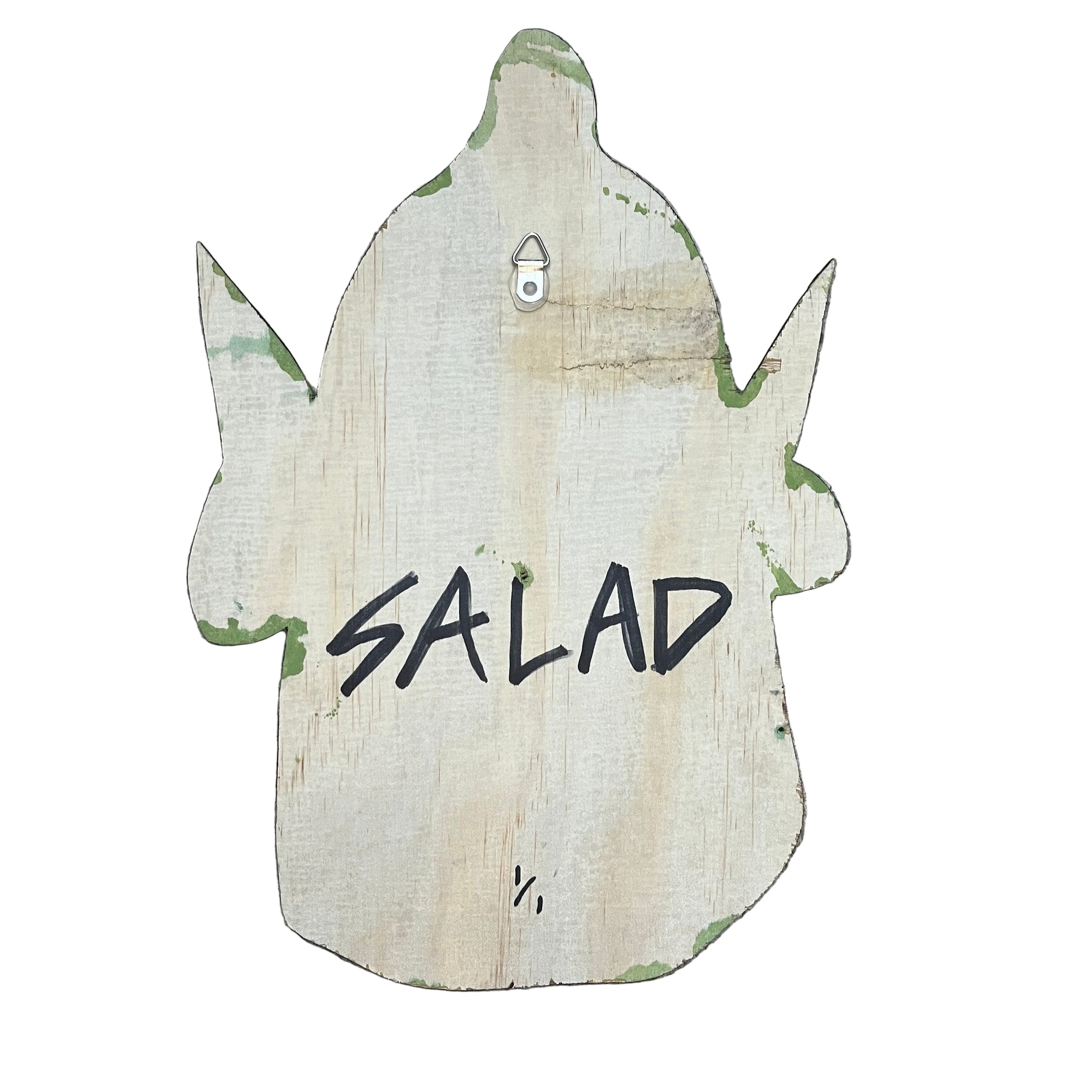 Add a touch of whimsy to your collection with this fun handmade 1/1 wooden wall sign designed by SALAD.