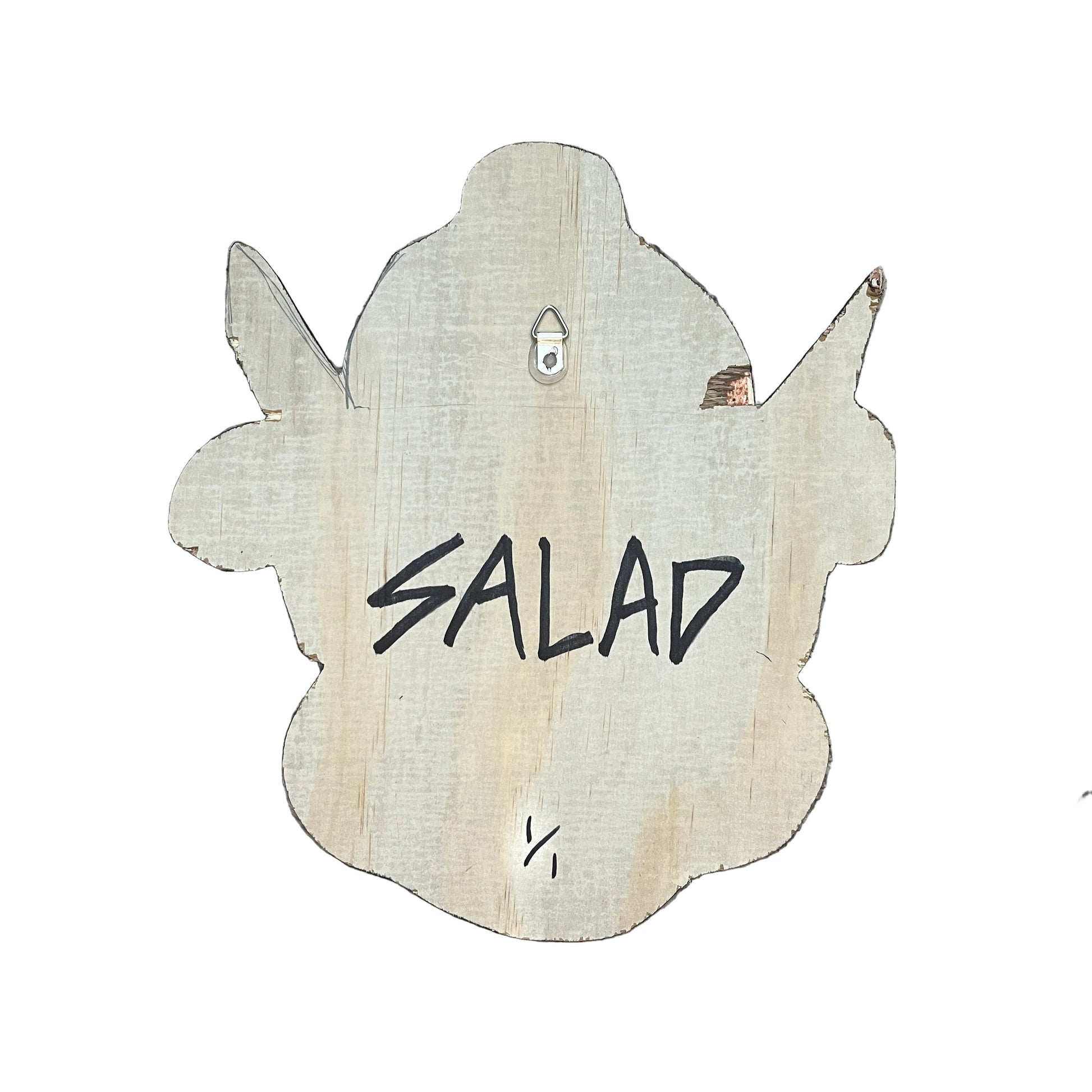 Add a touch of whimsy to your collection with this fun handmade 1/1 wooden wall sign designed by SALAD.