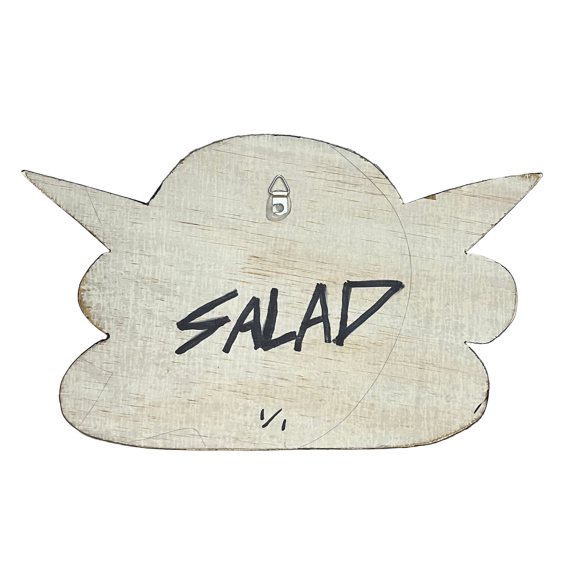 Add a touch of whimsy to your collection with this fun handmade 1/1 wooden wall sign designed by SALAD.